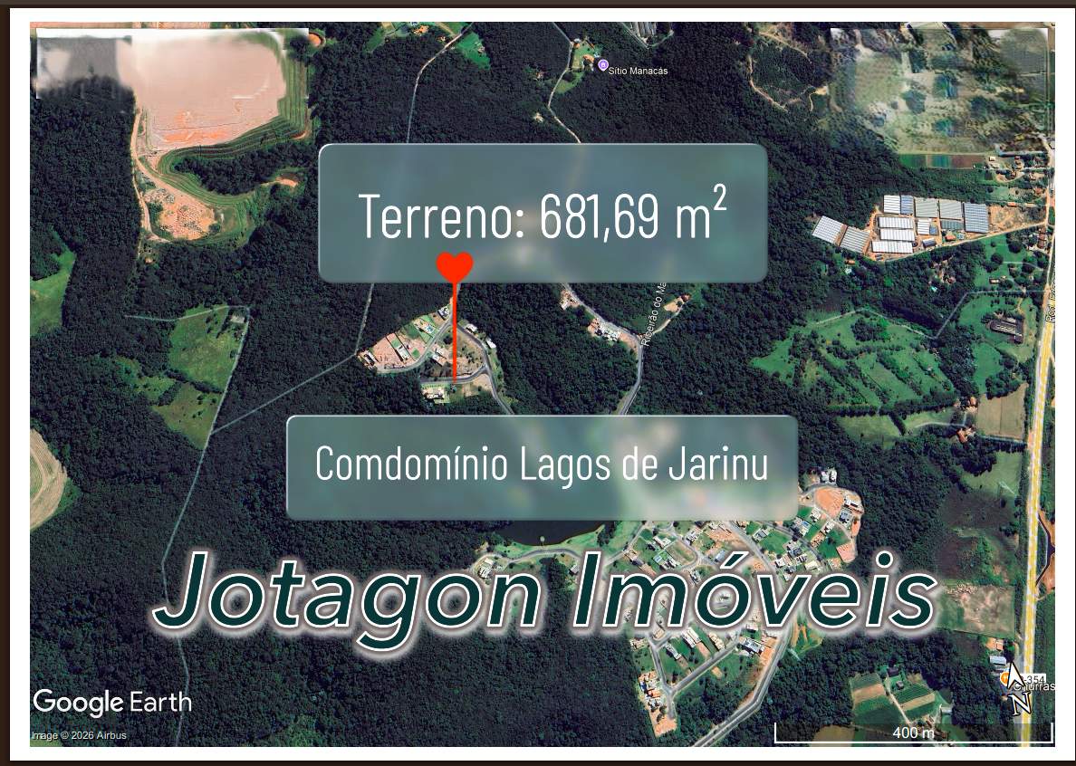 Terreno localizado no Condomínio Lagos de Jarinu, em Jarinu/SP, condomínio fechado com controle de acesso, infraestrutura completa e alto padrão construtivo.